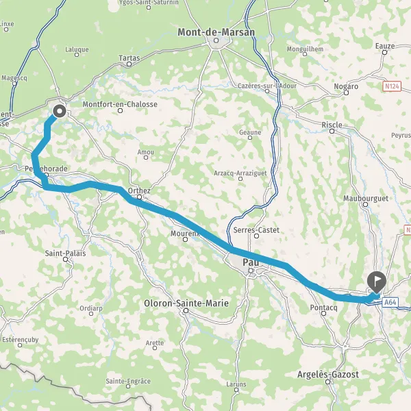 Continuer et rejoindre A64 E80. Continuer sur 103 kilomètres