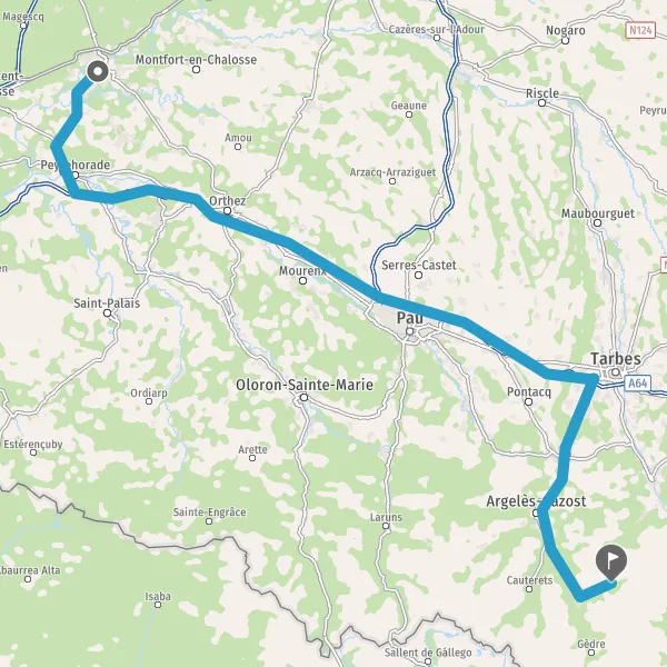 Prendre à droite et rejoindre A64. Continuer sur 20 kilomètres