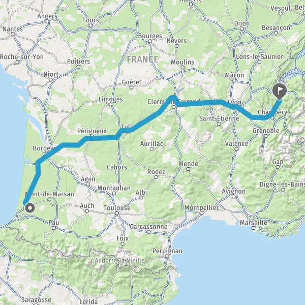 Prendre à droite et rejoindre A63 E5 E70. Continuer sur 117 kilomètres