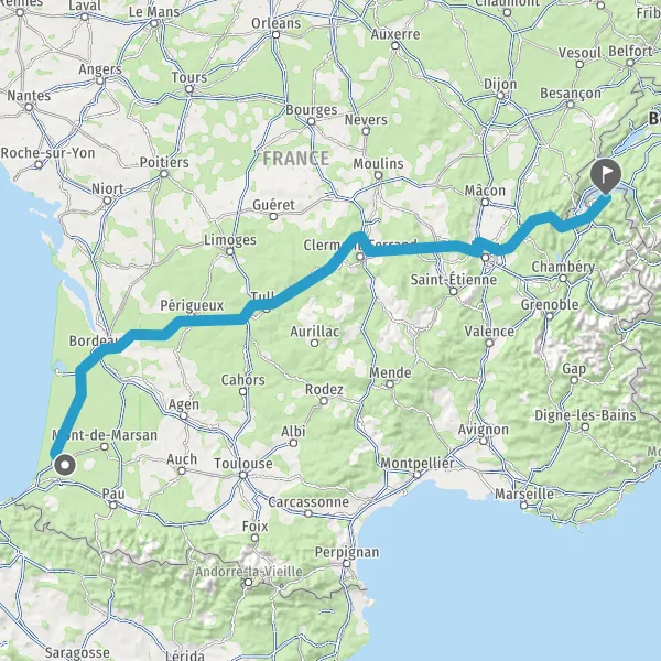 Prendre à droite et rejoindre A63 E5 E70. Continuer sur 117 kilomètres