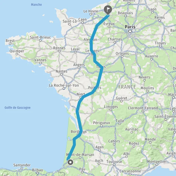 Continuer E5 (L'Aquitaine) sur 328 kilomètres