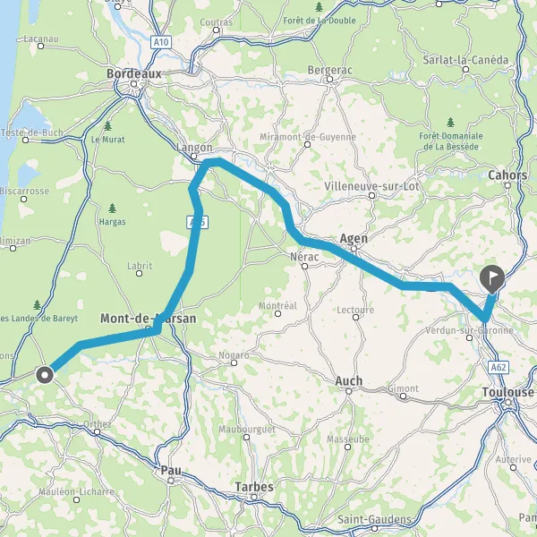 Prendre à droite et rejoindre A62 E72. Continuer sur 150 kilomètres