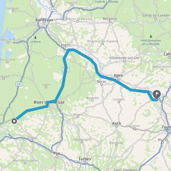 Prendre à droite et rejoindre A62 E72. Continuer sur 127 kilomètres