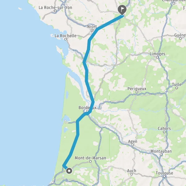Prendre à droite et rejoindre A63 E5 E70. Continuer sur 117 kilomètres