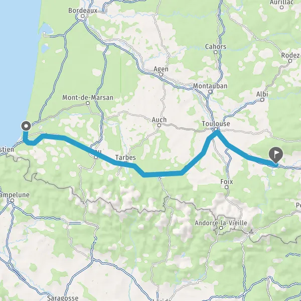 Prendre à droite et rejoindre A64. Continuer sur 287 kilomètres