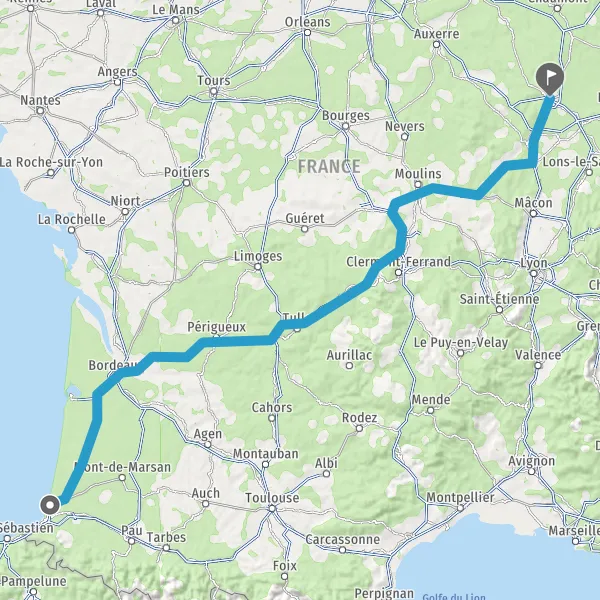 Prendre à gauche et rejoindre A63 E5 E70. Continuer sur 155 kilomètres