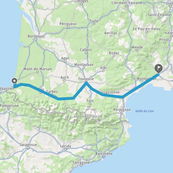 Prendre à droite et rejoindre A64. Continuer sur 287 kilomètres