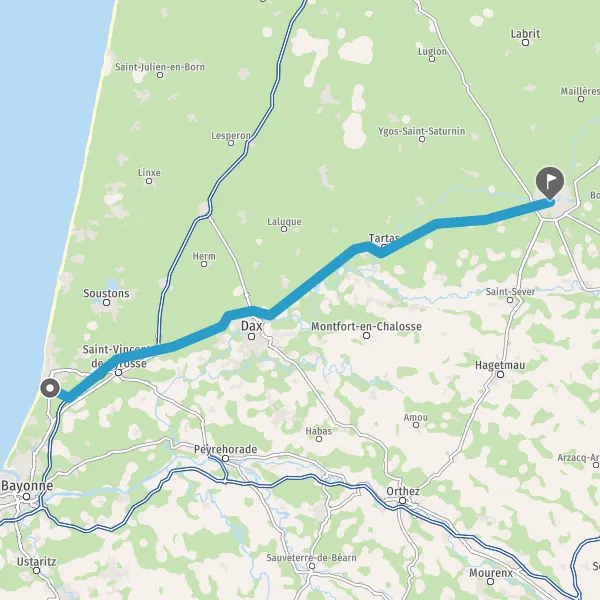 Prendre à droite et rejoindre D824 (Route de Bayonne). Continuer sur 39 kilomètres