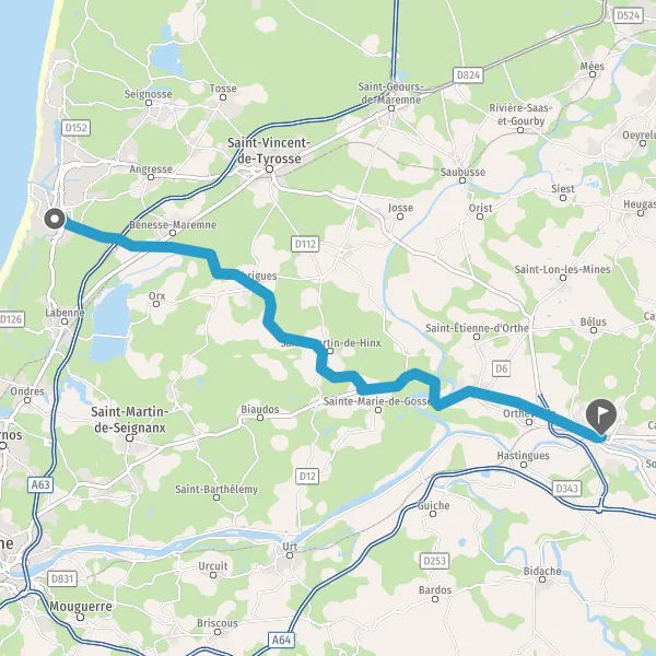 Tourner à gauche sur D817 (Route de Bayonne) et continuer sur 11 kilomètres