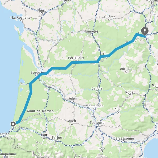 Prendre à gauche et rejoindre A63 E5 E70. Continuer sur 155 kilomètres