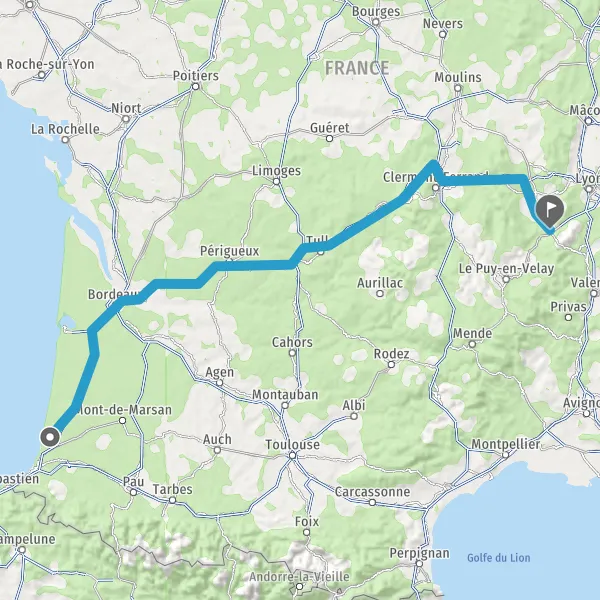 Prendre à droite et rejoindre A63 E5 E70. Continuer sur 130 kilomètres
