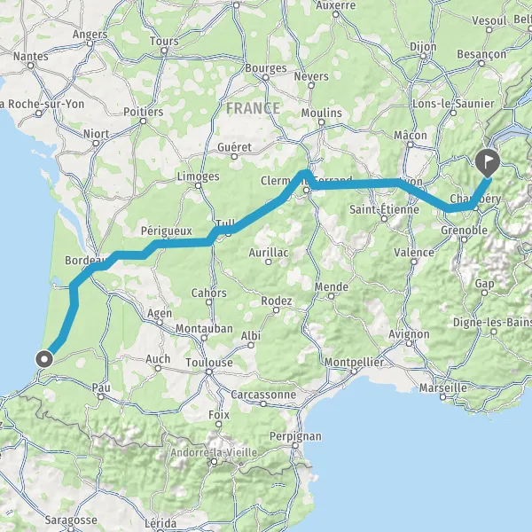 Prendre à droite et rejoindre A63 E5 E70. Continuer sur 130 kilomètres