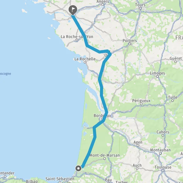 Prendre à gauche et rejoindre A63 E5 E70. Continuer sur 155 kilomètres