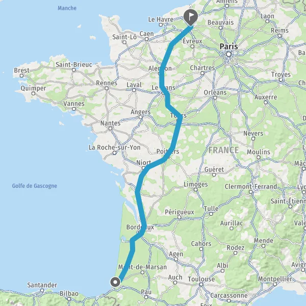 Continuer E5 (L'Aquitaine) sur 328 kilomètres
