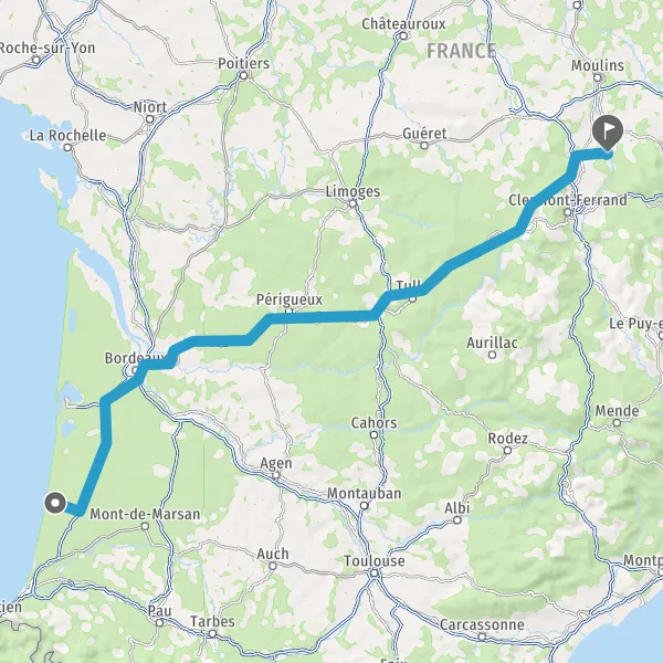 Prendre à droite et rejoindre A63 E5 E70. Continuer sur 104 kilomètres