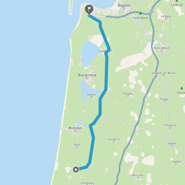 Tourner à gauche sur D46 (Avenue de Parentis) et continuer sur 9,9 kilomètres