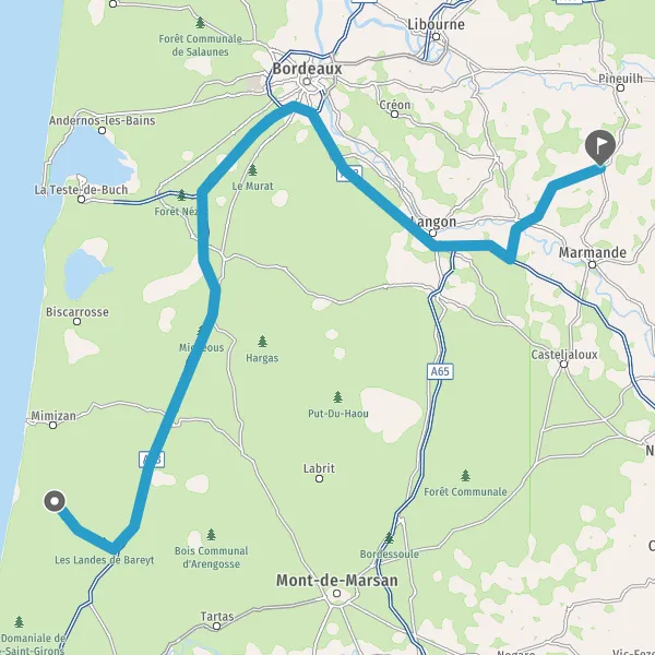 Tourner à gauche sur D63 (Route de Mimizan) et continuer sur 9,4 kilomètres