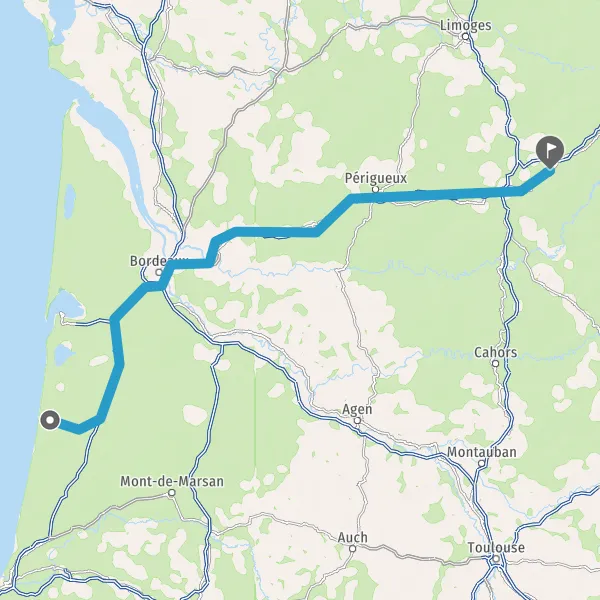 Prendre à droite et rejoindre A63 E70 E5. Continuer sur 76 kilomètres