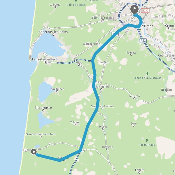 Avec le mode voiture, vous pouvez configurer vos options (type de véhicule, autoroute ou non, péage ou non, distance la plus courte), tout en ayant accès aux infos de circulation grâce à notre service d'info-trafic en temps réel. Ainsi faites des économies sur le coût ou la durée de votre voyage, en trouvant le trajet Mimizan Bordeaux adapté à vos besoins.