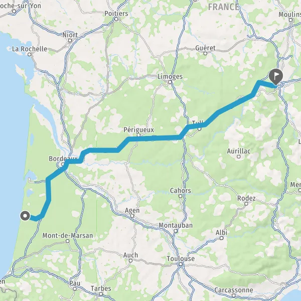 Prendre à droite et rejoindre A63 E5 E70. Continuer sur 21 kilomètres