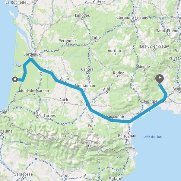 Prendre à gauche et rejoindre A62 E72. Continuer sur 224 kilomètres