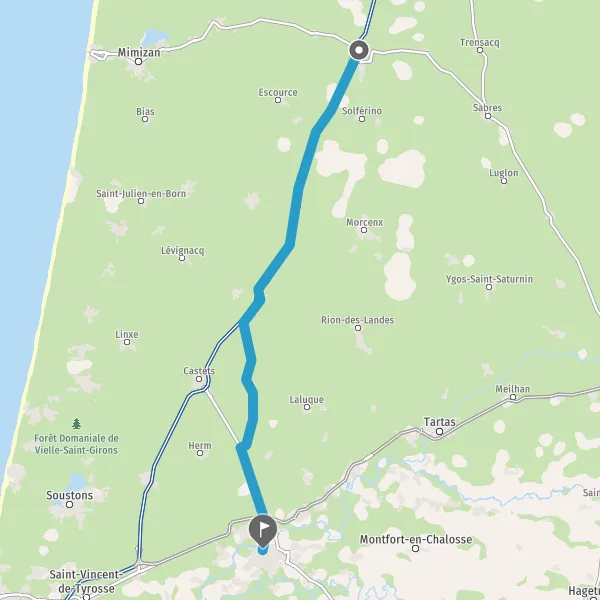 Prendre à droite et rejoindre A63 E5 E70. Continuer sur 28 kilomètres