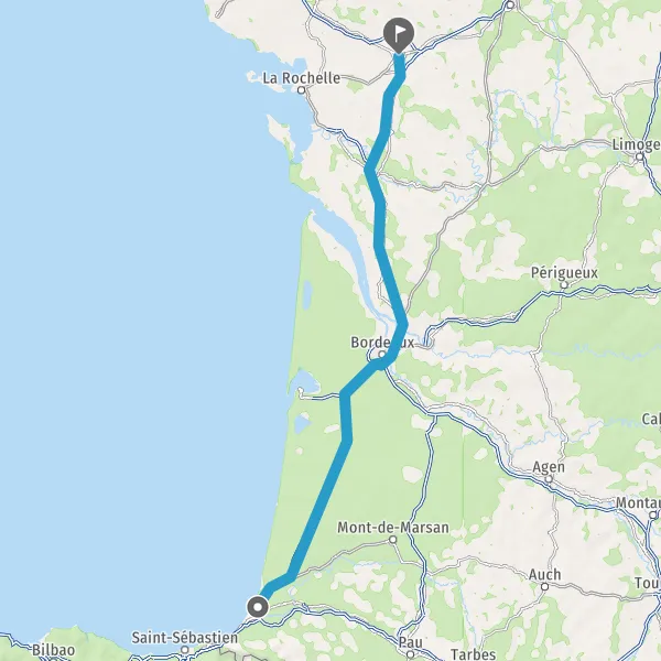 Prendre à droite et rejoindre A63 E5 E70. Continuer sur 166 kilomètres