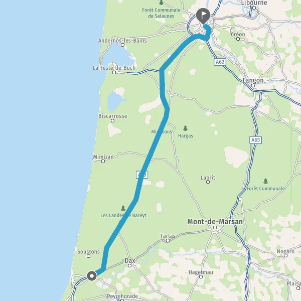 Avec le mode voiture, vous pouvez configurer vos options (type de véhicule, autoroute ou non, péage ou non, distance la plus courte), tout en ayant accès aux infos de circulation grâce à notre service d'info-trafic en temps réel. Ainsi faites des économies sur le coût ou la durée de votre voyage, en trouvant le trajet Saint-Vincent-de-Tyrosse Bordeaux adapté à vos besoins.