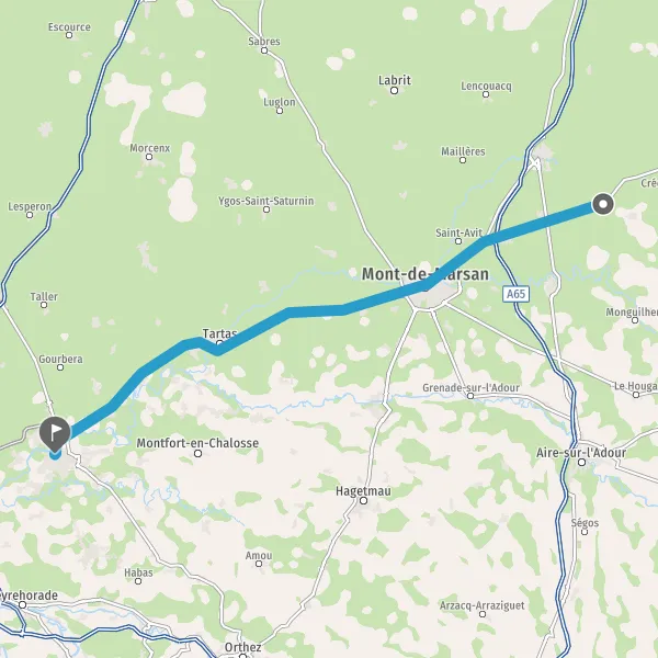 Au rond-point, prendre la 2ème sortie sur D824 (Route de Bayonne) et continuer sur 12 kilomètres