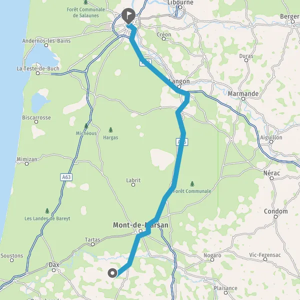 Prendre à droite et rejoindre A65 E7. Continuer sur 71 kilomètres