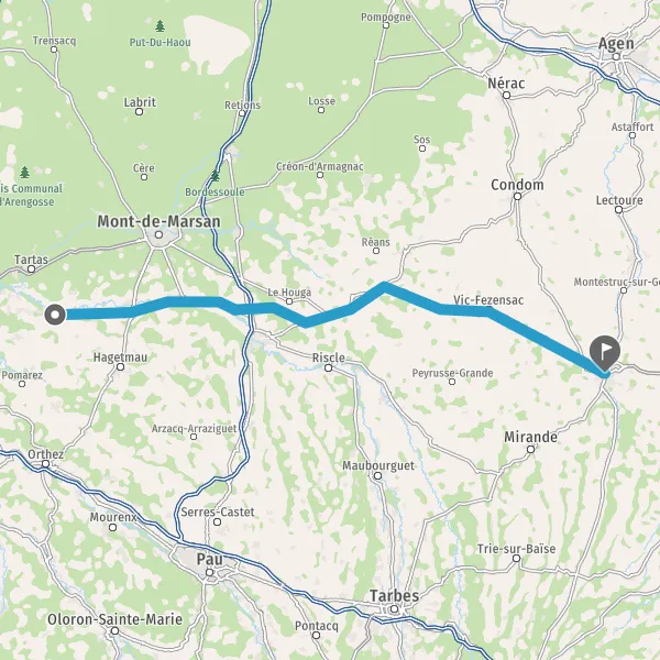 Tourner légèrement à droite sur N124 (Route d'Auch) et continuer sur 4,5 kilomètres