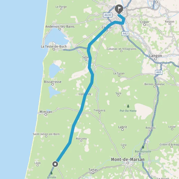 Prendre à droite et rejoindre A63 E5 E70. Continuer sur 69 kilomètres