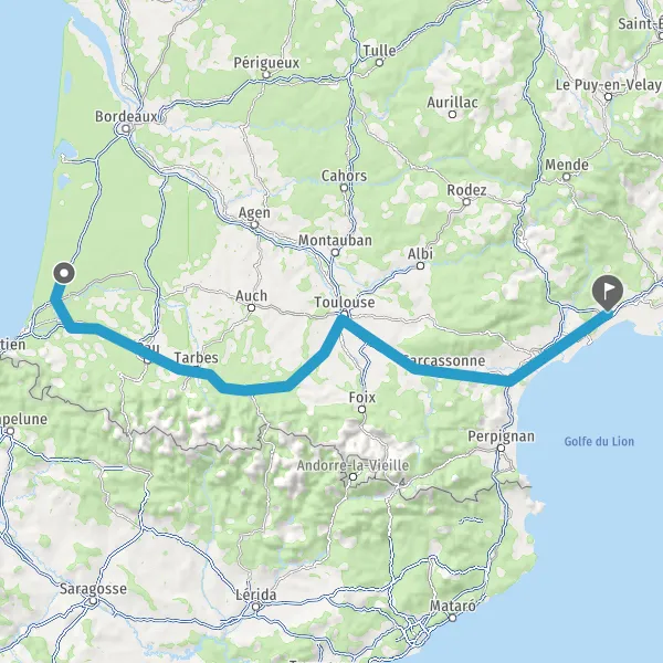 Prendre à droite et rejoindre A63 E5 E70. Continuer sur 22 kilomètres