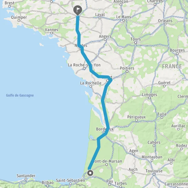 Prendre à droite et rejoindre A83. Continuer sur 150 kilomètres