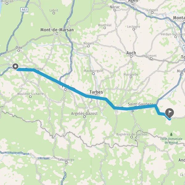 Continuer et rejoindre A64 E80. Continuer sur 187 kilomètres