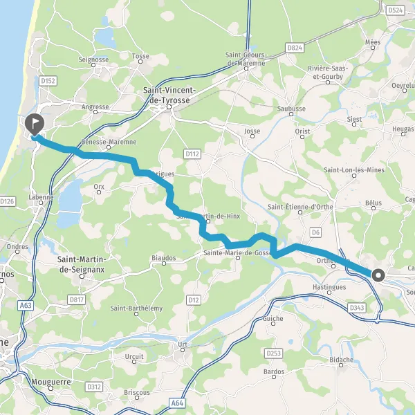 Tourner à gauche sur D366 (Route de l'Océan) et continuer sur 4,6 kilomètres
