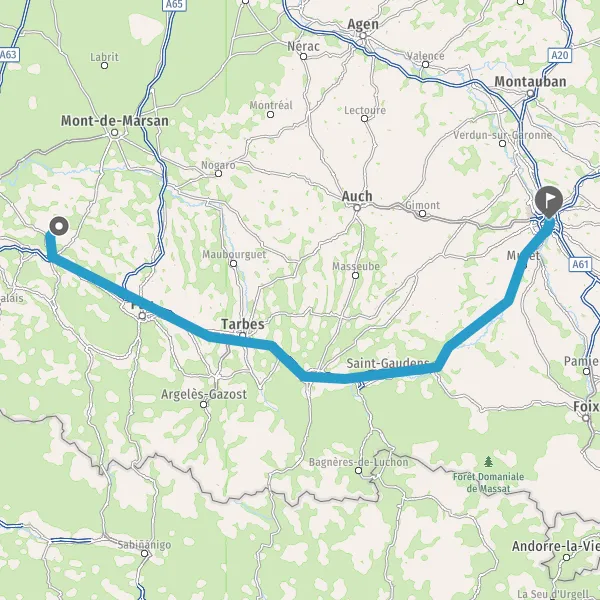 Prendre à droite et rejoindre A64 E80. Continuer sur 220 kilomètres