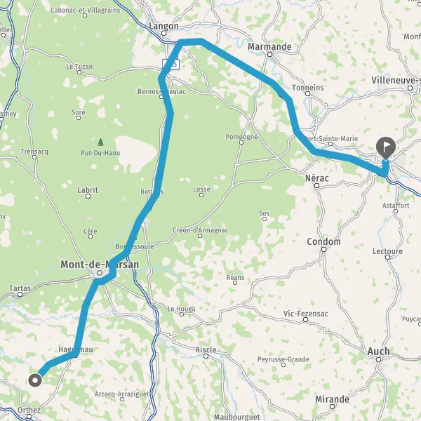 Prendre à droite et rejoindre D931 (Route de Condom). Continuer sur 350 mètres