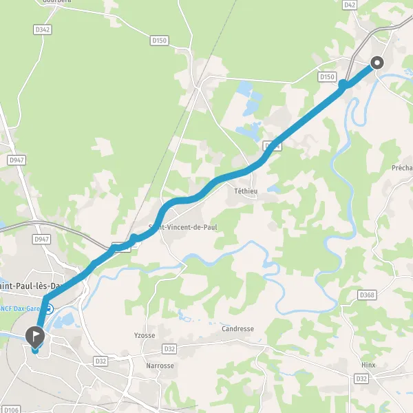 | Distance en voiture | 15,2 km à 15,5 km |