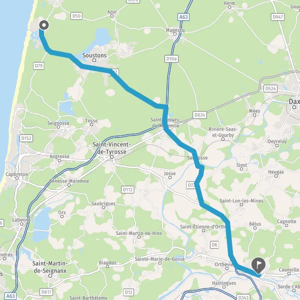 Tourner à droite sur D17 (Route de Saubusse) et continuer sur 5 kilomètres