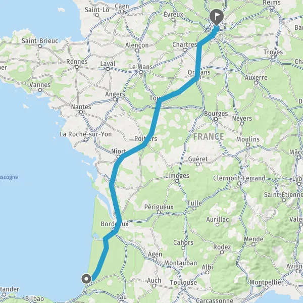 Prendre à droite et rejoindre A63 E5 E70. Continuer sur 130 kilomètres