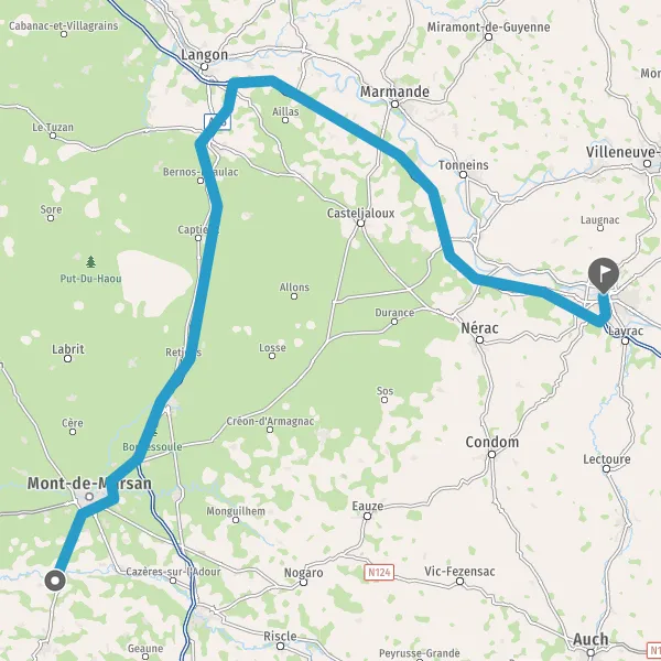 Prendre à droite et rejoindre D931 (Route de Condom). Continuer sur 350 mètres