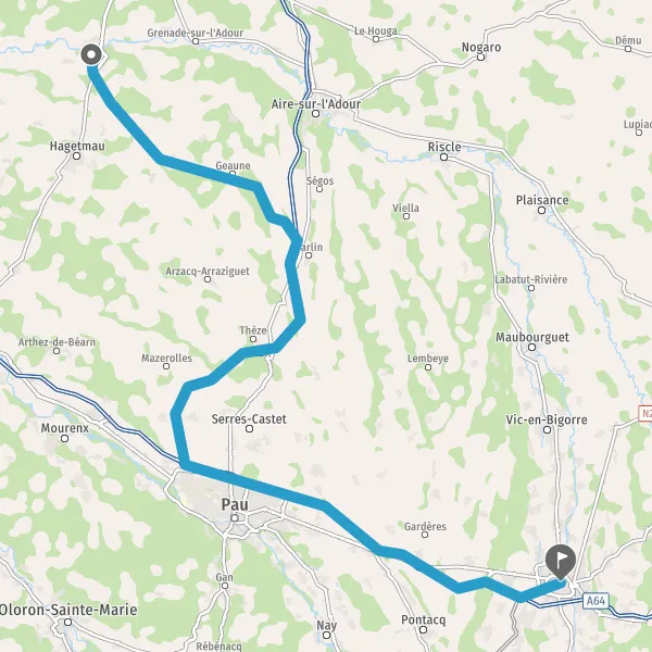 Prendre à droite et rejoindre A64 E80. Continuer sur 43 kilomètres