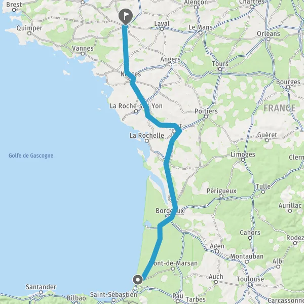 Prendre à droite et rejoindre A83. Continuer sur 150 kilomètres