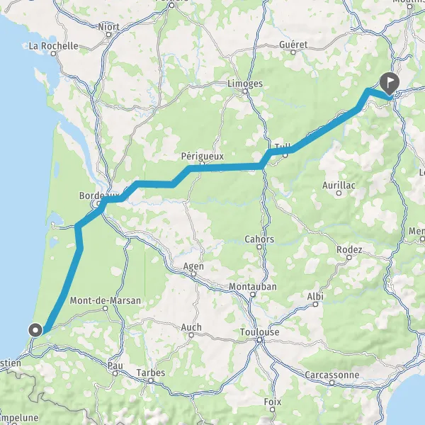 Prendre à droite et rejoindre A63 E5 E70. Continuer sur 137 kilomètres
