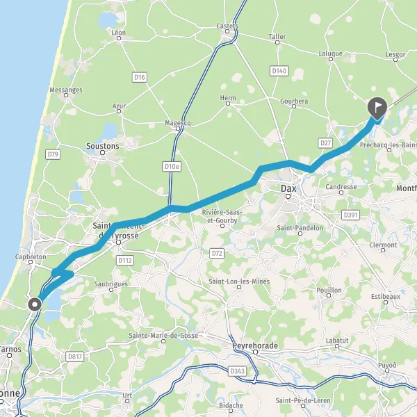 | Distance en voiture | 47,9 km à 54 km |