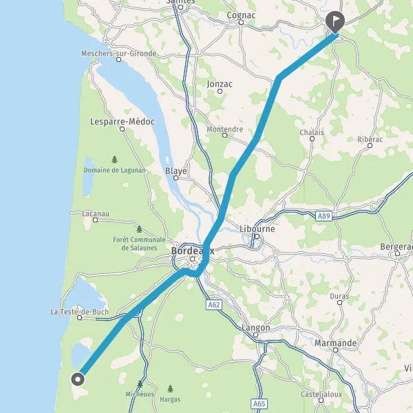 Tourner légèrement à droite sur D652 (Route de Bordeaux) et continuer sur 8,6 kilomètres