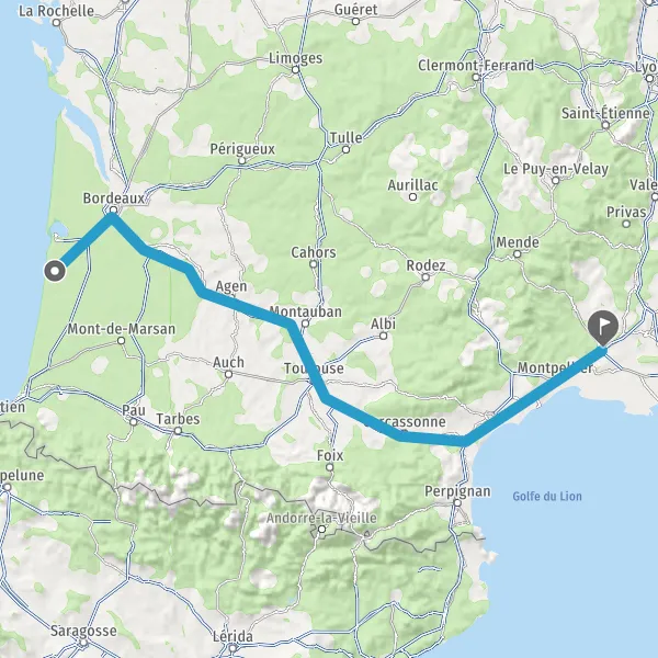 Prendre à gauche et rejoindre A62 E72. Continuer sur 224 kilomètres