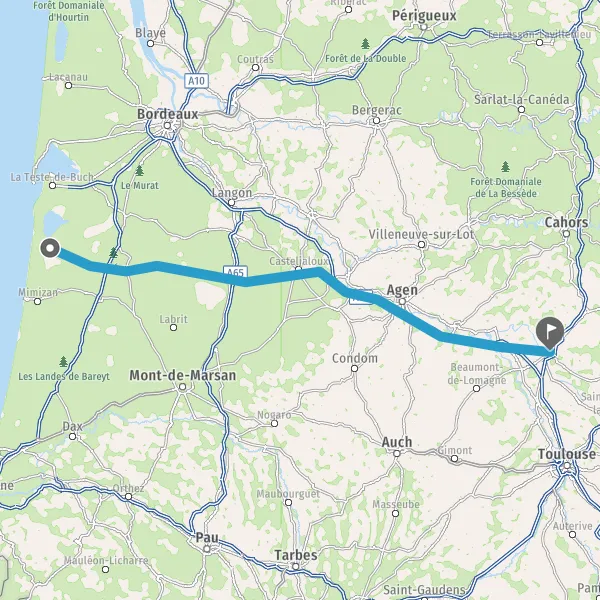 Tourner légèrement à droite sur D652 (Route de Bordeaux) et continuer sur 8,6 kilomètres