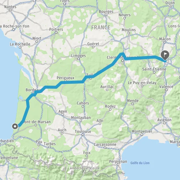Prendre à droite et rejoindre A63 E5 E70. Continuer sur 116 kilomètres